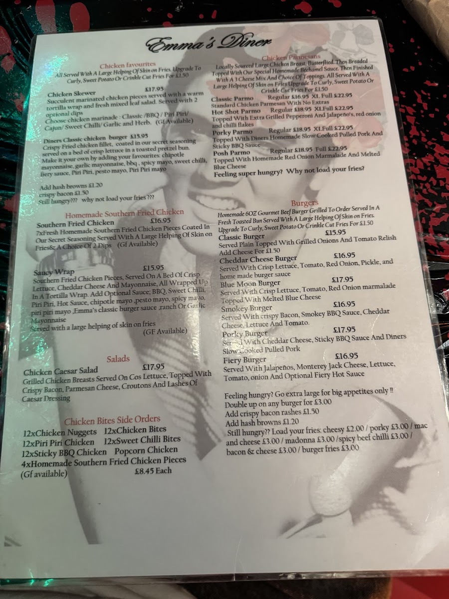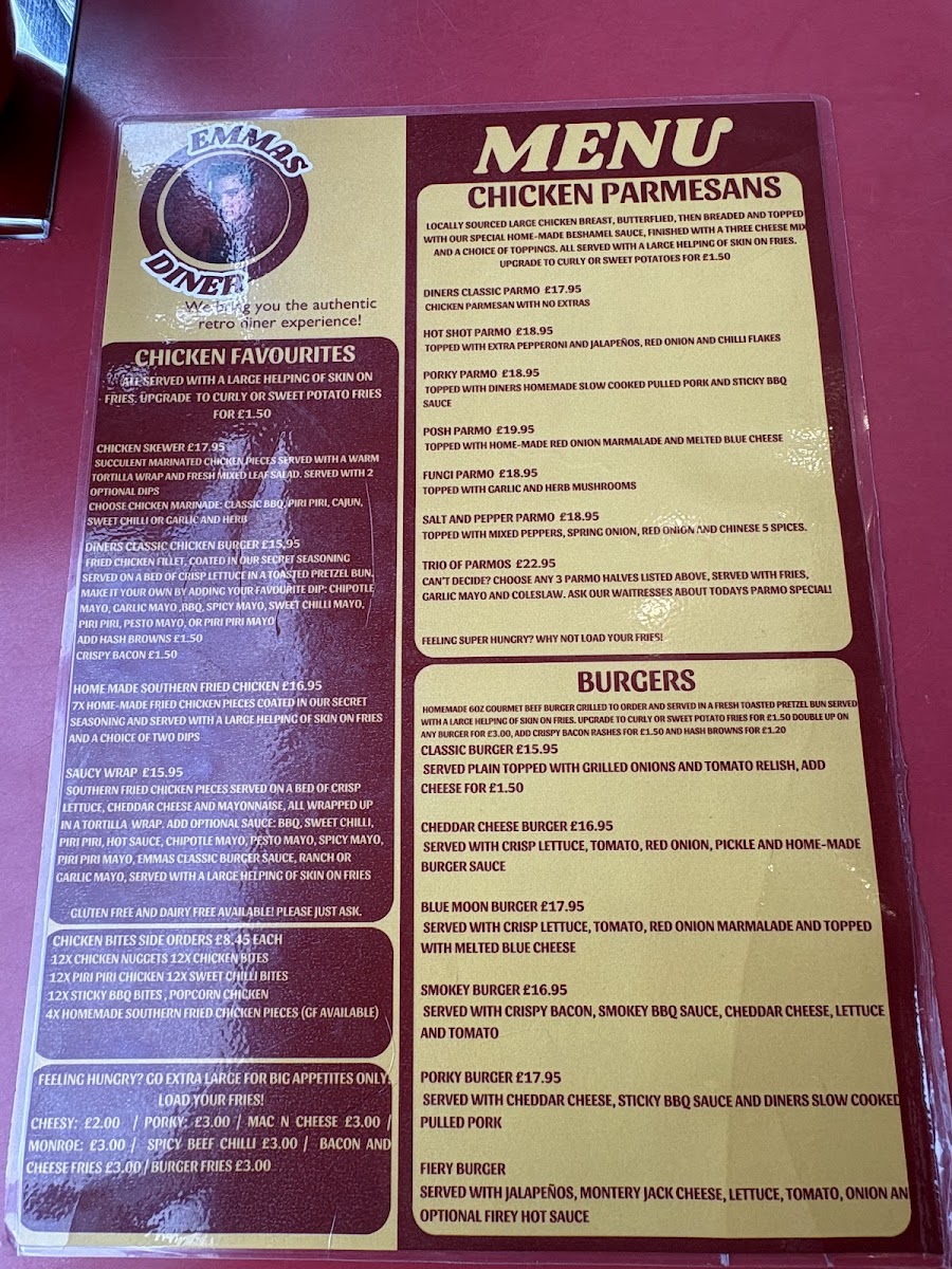Emma’s Diner offers a menu that feels inviting and straightforward, perfect for those seeking comfort food in a relaxed American-style diner setting. The selection focuses on familiar, hearty dishes and casual bites that fit well with a friendly, retro atmosphere.